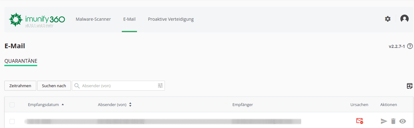 Über das Augensymbol kannst du dir die E-Mail im Detail ansehen und beurteilen, ob sie zugestellt oder gelöscht werden soll.