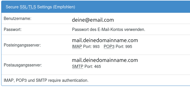 Sobald du deine E-Mail Adresse eingerichtet hast bekommen du die Client Configuration settings E-Mail.