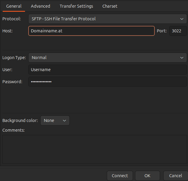 Der SFTP-Port lautet bei uns 3022.