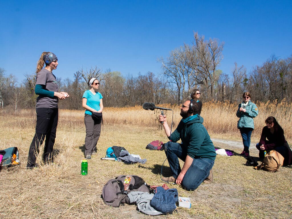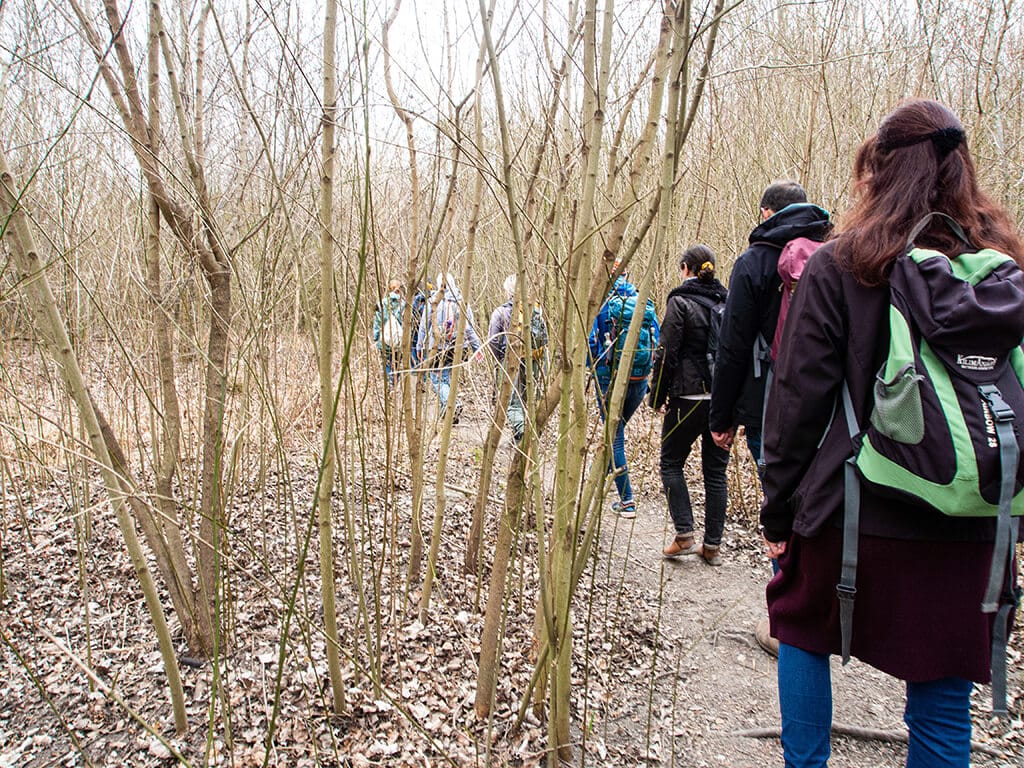 Nach einem kurzen Kennenlernen beim Nationalparkhaus wien-lobAU, starteten wir zu dreizehnt an diesem noch leicht bedeckten, aber verheißungsvoll warmen Frühlingssonntag in die verschlungenen Wege im Wiener Naturschutzgebiet. Die Vogel zwitscherten munter vor sich hin, und ich war für einen Sonntagmorgen bereits erstaunlich wach. Im Gehen ergaben sich die ersten Gespräche über Wandererfahrungen, das Reisen oder auch Kunst & Natur locker und selbstverständlich. Ich selbst kenne die Lobau recht gut und komme, seit ich in Wien bin, recht häufig hier her, auch mit Wien-Neulingen.