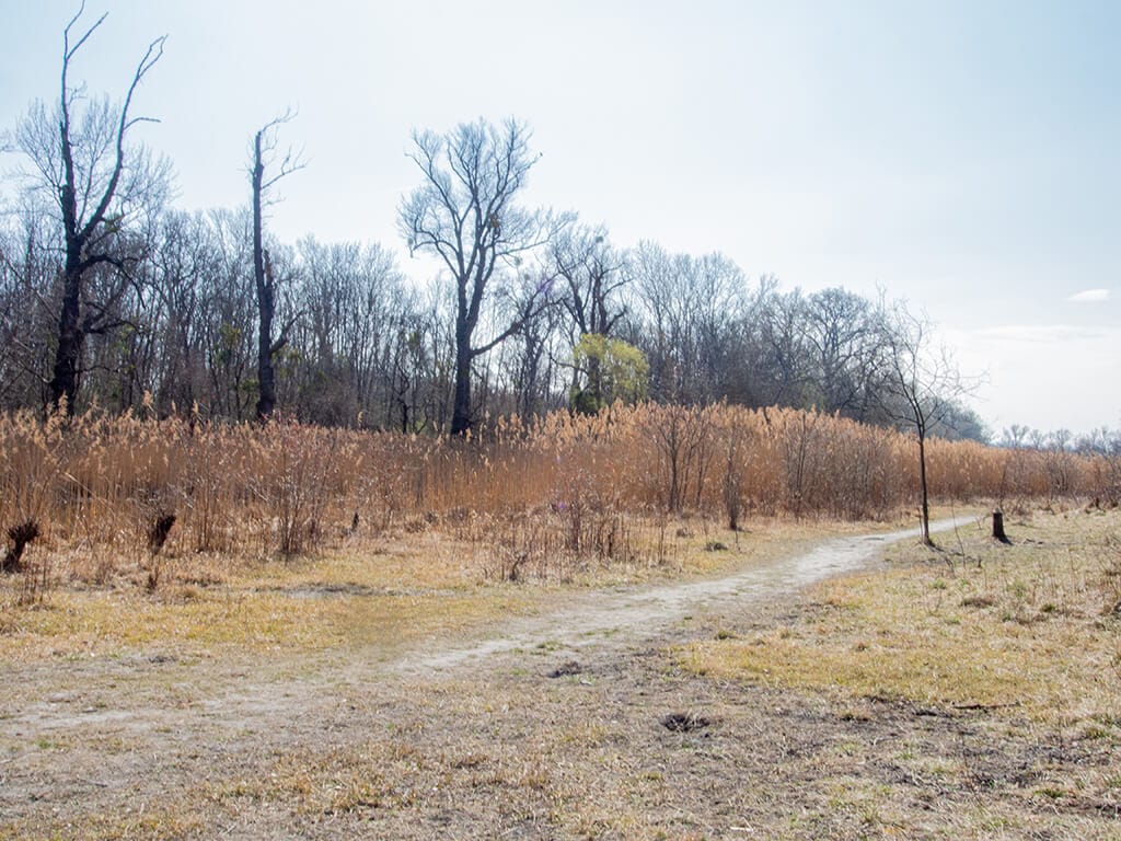 Nachdem wir über mäandernde Wegschleifen in die Welt der Lobau eingetaucht sind, gelangten wir an eine große, offene und sehr dürre Wiese. Sie erinnerte mehr an eine Steppe oder ein Savannengebiet, als an Auen am Rande der Stadt Wien.